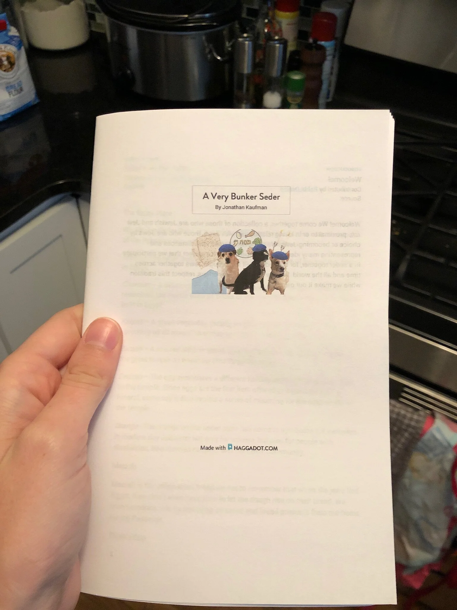 Groceries from H-Mart; programs for the Passover seder on Friday.