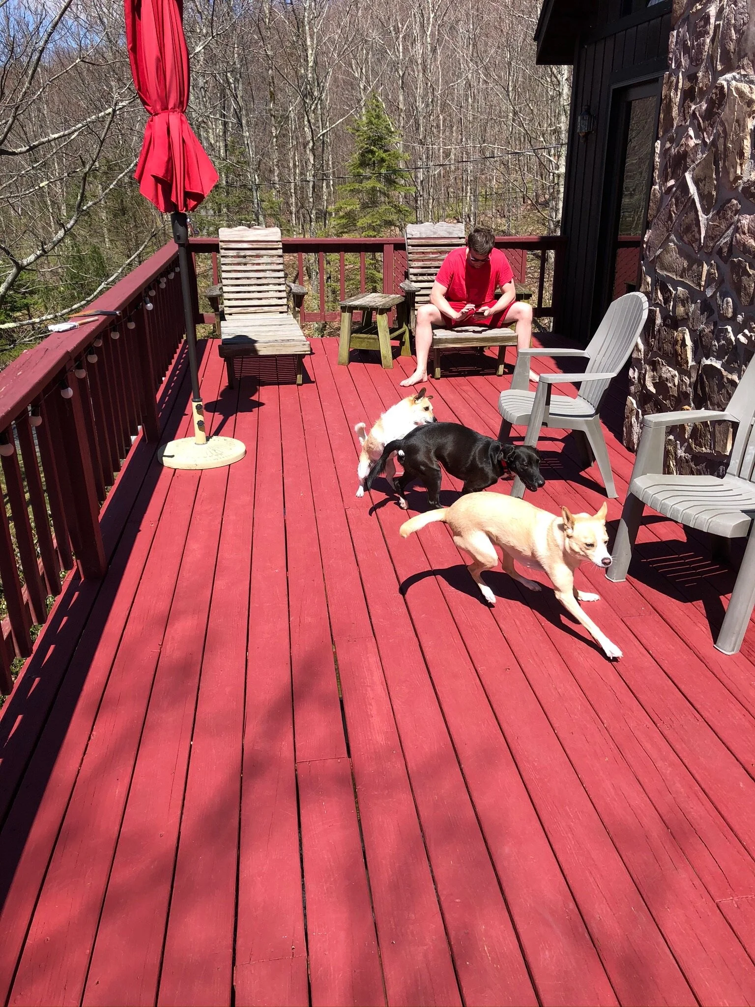 Anne did her friend Krista's remote Urban Kick class on the deck; Jon and Delanie did yoga on the deck.